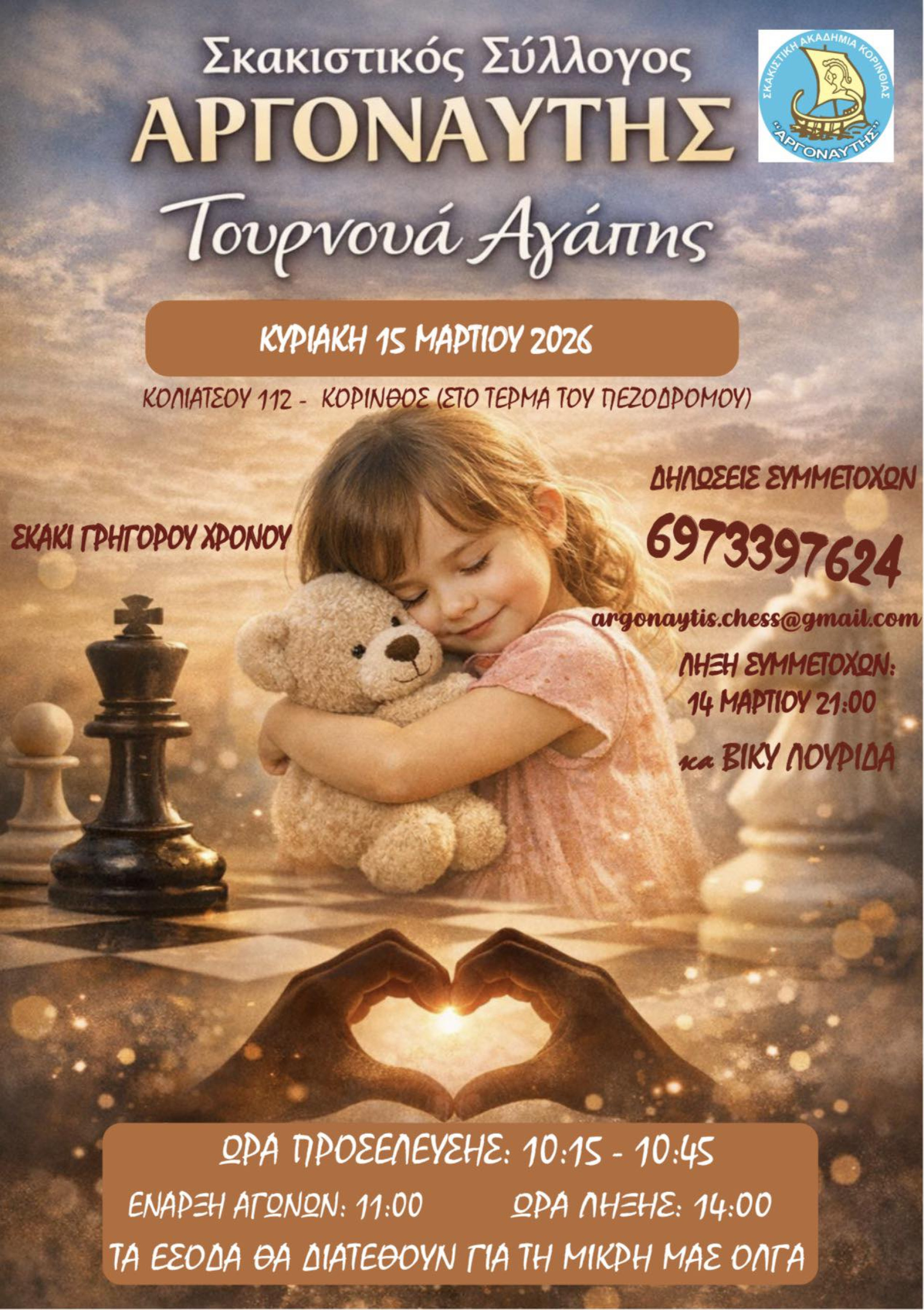 Θα μας βρείτε: Κολιάτσου 112, Τηλ. Επικ.:6973397624, 69554784184 https://www.facebook.com/chess.argonaytis/, https://my-club.sakargonaytis.gr/
